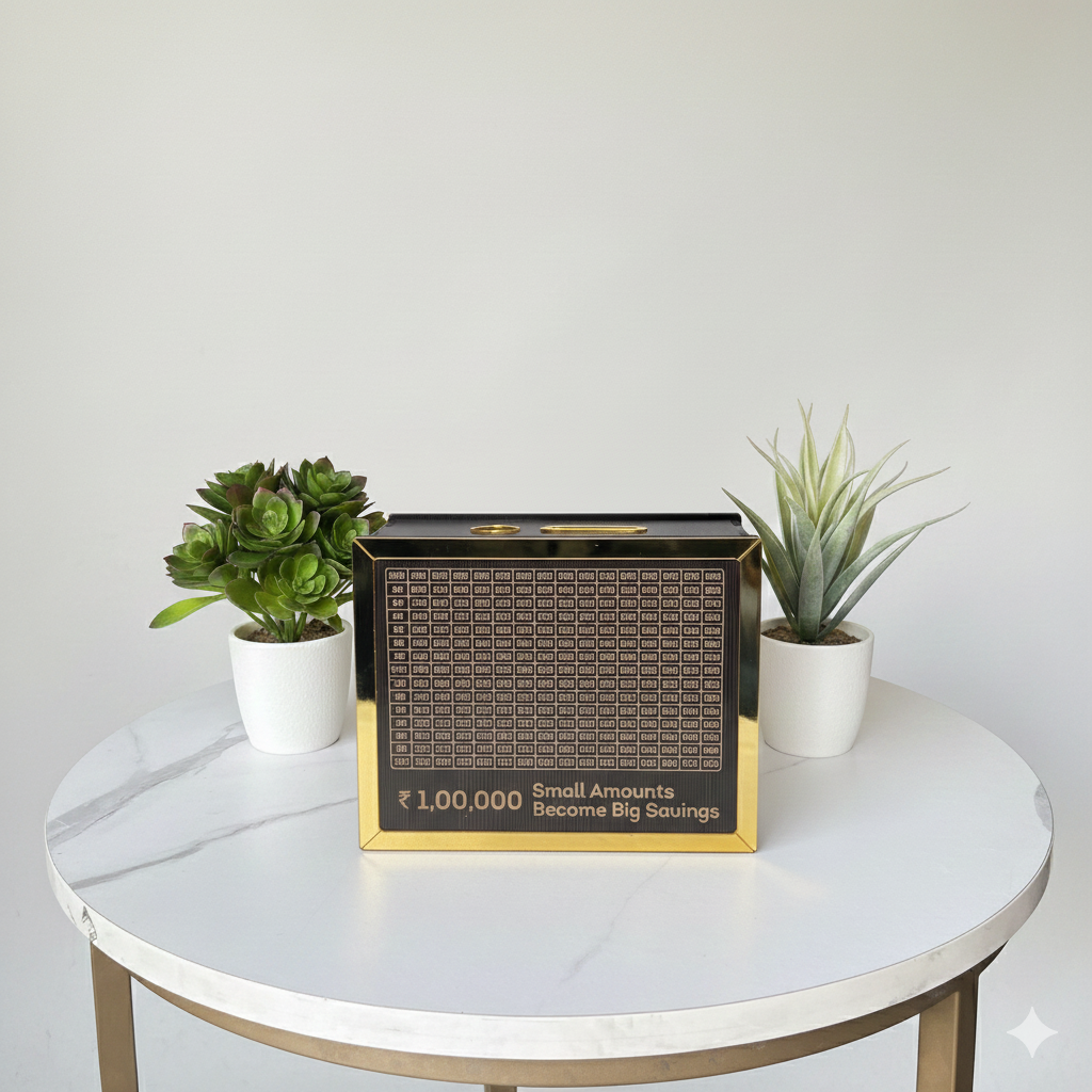 ₹1,00,000 Savings Challenge Box – Break to Open | MDF + Acrylic | 8 Inch