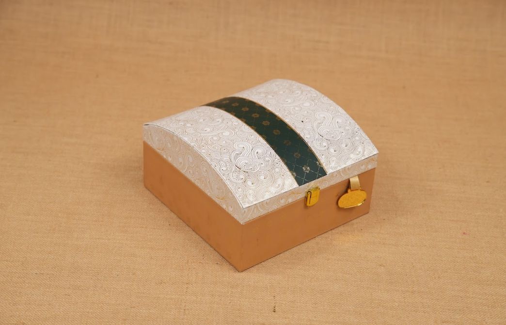 Make every gift a royal feast with our Daawat-e-Khas Curved Lid Diwali Hamper Box. Crafted from premium MDF and adorned with embossed prints, this elegant hamper features a curved lid design, golden lock, and rich satin-lined interior for a touch of opulence.