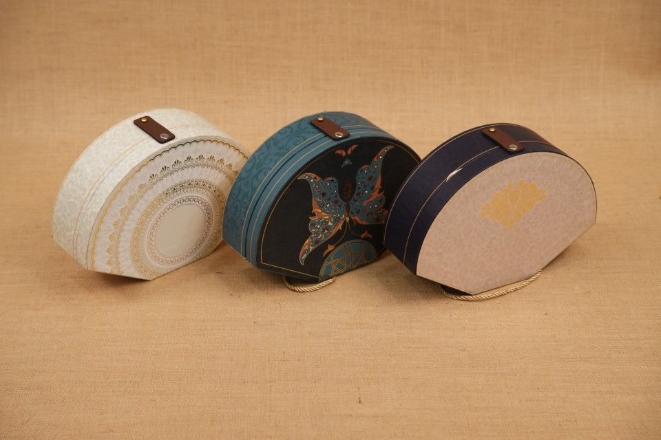 Make your festive gifting stand out with our Shell Round Diwali Hamper Box. Crafted from premium Kappa board with printed patterns, lamination foil, and embossed UV detailing, this unique shell-shaped box is both stylish and functional.