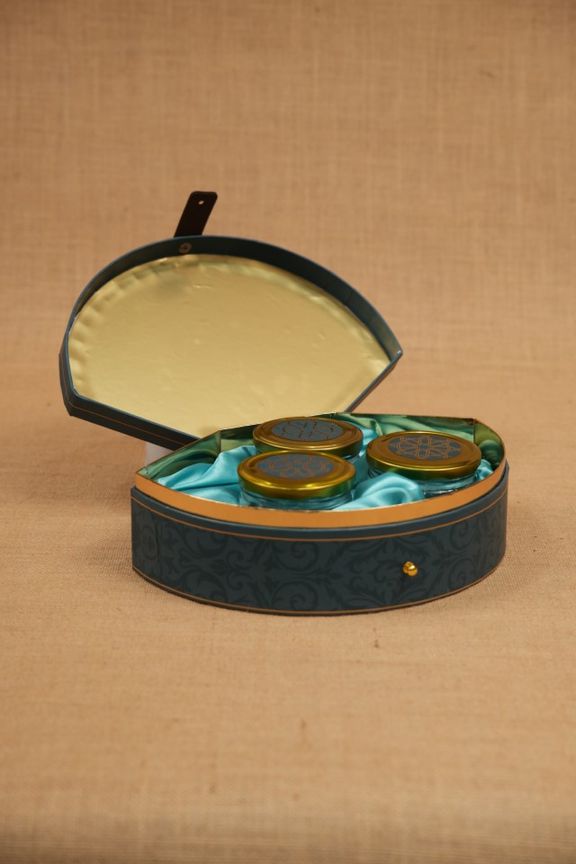 It includes 3 reusable salsa jars (300ml each), perfect for gifting dry fruits, sweets, chocolates, or gourmet delights. Available in three elegant designs, it’s a compact yet premium choice for Diwali, weddings, or corporate gifting.