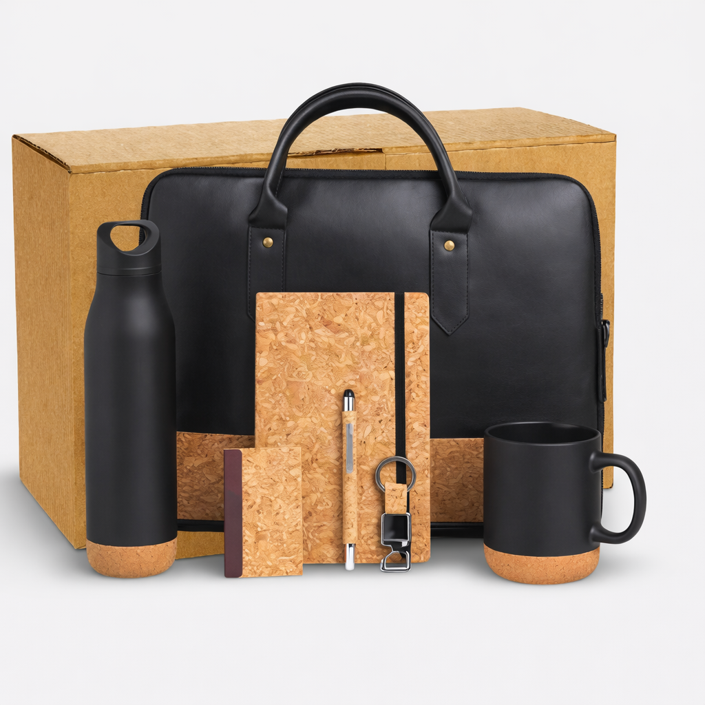 SR-368 Premium Executive Corporate Hamper – Cork Finish Laptop Bag, Bottle, Mug, Diary, Pen, Keychain & Cardholder